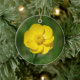 Este ornamento caracteriza um único botão de ouro brilhante, alegre, amarelo, ranúnculo, flor contra um fundo verde summery. O botão de ouro é associado simbolicamente frequentemente com o cheerfulness, o encanto, o childishness e as riquezas. Deixe a natureza decorar seus árvore ou presentes do feriado. Os ornamento igualmente fazem grandes trações do fã ou das lâmpadas.
