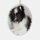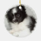 Ornamento pomeranian do cão do brinquedo preto e branco.