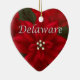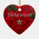 Um gráfico de uma Poinsettia vermelha num ornamento cardíaco de Delaware. O ornamento tem modelos para o seu texto.Nota: O efeito 3D é a imagem - o ornamento é plano. ©2013charmanepaulson.