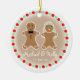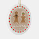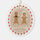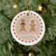Um ornamento para comemorar seu primeiro Natal como o marido e a esposa. Ornament características uma ilustração de uns noivos do pão-de-espécie. Luz - bronzeie o fundo com design circunvizinho do círculo vermelho & verde dos doces. Personalize o texto branco sob noivos com seus nomes e data do casamento.