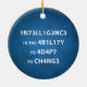 Circular Ornament com a citação "Inteligência é a Habilidade de se Adaptar à Mudança" de Stephen Hawking com números substituindo alguns alfabetos para fazer a leitura divertida. Excelente maneira de inspirar-se, tentando ler e divertir-se sobre sua habilidade mental de ler o texto distorcido.