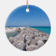 Ornament souvenir com vista a olhar para a bela Costa Esmeralda do Golfo do México no meio de uma cidade rochosa na Ilha Shell, na Praia do Panamá, na Flórida. Procurando mais produtos? Visite minha loja: http://www.zazzle.com/timelessmomentsphtgy Foto tirada por Jennifer White com Fotografia Moments Eterno. Todas as imagens são protegidas por direitos autorais.