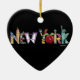 As pinturas originais da aguarela por Anne Ormsby das cenas na Nova Iorque fazem as letras do nome da cidade neste ornamento dado forma coração.