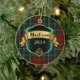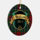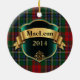 Ornamento cerâmico da xadrez colorida, com o teste padrão vermelho, azul, verde, preto, amarelo, e branco tradicional da xadrez de tartan de MacLean do clã, como um fundo. Os gráficos de um verde e de um protetor goldtone de caçador gostam da chapa, têm o texto preto e goldtone feito sob encomenda pronto para personalizar. Grande ornamento de vista da herança de família. Faz um grande presente ornament e a decoração para outros usos em torno da casa.