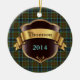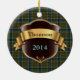 Ornamento cerâmico da xadrez colorida, com o teste padrão marrom, azul, e verde tradicional da xadrez de tartan de Thomson do clã, como um fundo. Os gráficos de um protetor marrom e goldtone gostam da chapa, têm o texto azul e marrom feito sob encomenda pronto para personalizar. Grande ornamento de vista da herança de família. Faz um grande presente ornament e a decoração para outros usos em torno da casa.