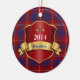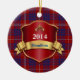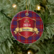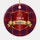 Ornamento cerâmico da xadrez colorida, com o teste padrão vermelho, azul, e branco tradicional da xadrez de tartan de Hamilton do clã, como um fundo. Os gráficos de um protetor vermelho e goldtone gostam da chapa, têm o texto azul e branco feito sob encomenda pronto para personalizar. Grande ornamento de vista da herança de família. Faz um grande presente ornament e a decoração para outros usos em torno da casa.