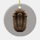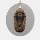 Ornamento redondo com o fóssil digital aperfeiçoado do trilobite em um fundo cinzento.