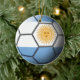 A bandeira de Argentina gravou através de uma bola de futebol em um ornamento cerâmico frente e verso.