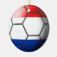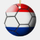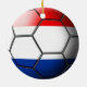 A bandeira de Países Baixos gravou através de uma bola de futebol em um ornamento cerâmico frente e verso.