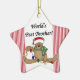 O ornamento customizável do feriado da lembrança do design do urso de ursinho do melhor irmão do mundo caracteriza um urso de ursinho com luzes do feriado e um boné de meia e uma área na parte de trás do ornamento onde você pode facilmente a personalizar com um nome e um ano ou uma data ou o outro texto!