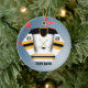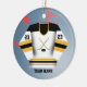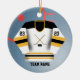 Personalize este ornamento do jérsei do jogador de hóquei com seus número e nome da equipe na parte dianteira e na sua parte traseira do nome e do número sobre. Faz um grande presente para seu jogador de hóquei favorito ou igualmente faz um grande presente da equipe. Excelente para o segundo grau e presentes internos da liga de hóquei!