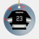 Personalize este ornamento do jérsei do jogador de hóquei com seus número e nome da equipe na parte dianteira e na sua parte traseira do nome e do número sobre. Faz um grande presente para seu jogador de hóquei favorito ou igualmente faz um grande presente da equipe. Excelente para o segundo grau e presentes internos da liga de hóquei!