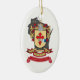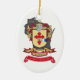 Pendure seu ornamento 2018 festivo da reunião na árvore este ano. Crista da reunião de família na parte dianteira com uma parte traseira do vermelho