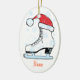 Skate de gelo personalizado vestindo um chapéu santa. Seu nome de um lado e do outro.