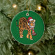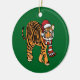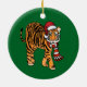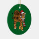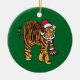 Um desenho de um tigre de desenho animado vestindo um chapéu de Papai Noel e um cachecol em volta do pescoço.