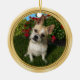 Visite por favor nossa loja para ver lotes de ideias do presente para amantes do animal de estimação ou de ideias do presente da simpatia do animal de estimação personalizadas ou não. Os ornamento cerâmicos têm um modelo na parte dianteira e na parte traseira destes enfeites de natal do animal de estimação. Chame o desenhista Linda para projetar um presente do animal de estimação em estilos diferentes dos ornamento ou em centenas de outros produtos.