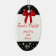 Um grande ornamento para recordar o que o pouco uns desejou para Christmases perto. Caracteriza o preto com as estrelas brancas na parte superior e na parte inferior. Um gráfico de uma fita vermelha senta-se na parte superior. O centro é branco com texto vermelho. Você personaliza seu pequeno sua lista de presente nela.