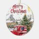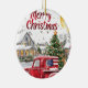 Nostalgic Feliz Natal Red Truck Ornament Comemora a temporada de festas com este Enfeites de natal festivo com um clássico carregando vermelho como boneco de neve, rena e bandeira americana, contra casas cobertas de neve e uma bela árvore de Natal decorada. Com uma saudação calorosa de "Feliz Natal" e uma lua de cheio brilhante, esta cena captura o encanto arecedor de um feriado em pequena cidade. Perfeito para amantes de caminhões antigos e decoração tradicional de Natal, este ornamento pode ser personalizado com um nome ou mensagem, fazer-o de uma única manutenção ou um presente de feriado ponderado.