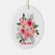 Cerâmica Ornamento Floral de Rosa de Aquarela