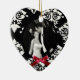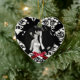 Um ornamento decorativo personalizado em forma de coração, com uma foto de casamento cercada por gráficos de um corte circular em preto e branco, terminado com sotaque vermelho de arco. Personalize com a sua fotografia de casamento e o texto no fundo, por uma lembrança memorável.