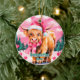 Ornamento Fotográfico de Crianças de Vaca de Natal Rosa