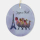 Ilustração gráfica de três galinhas francesas na torre Eiffel para os feriados. Ilumine acima da estação com este ornamento do tema do Natal.