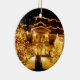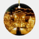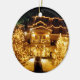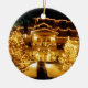 Uma imagem festiva de um vinho ao brilho com luzes de férias agita este adorável ornamento de feriado.