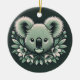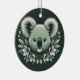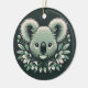Ornamento coala redondo com fundo verde.