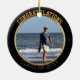 Ornamento moderno da lembrança da foto da graduação no quadro circular preto simples preto e do ouro com a borda interna impressa do olhar do metal do ouro em torno da foto da graduação. Lê parabéns em letras atléticas curvadas do estilo do ouro corajoso acima da foto e da classe com de ano feito sob encomenda curvado abaixo dela. Chique, ornamento minimalista da graduação e decoração personalizada do feriado. Presente legal, personalizado da graduação ou presente personalizado do Natal para o formando, especialmente se suas cores da escola são pretas e ouro.