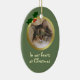 Adicione a Foto do Seu Gato a este Maço de Natal Celebra um animal de estimação muito amado e perdido no Natal com ouro e verde. Crie um adorável ornamento de memória adicionando a foto do seu gato à frente desta manutenção de Natal gatinho, e adicione seu nome e datas ao contrário. Os animais de estimação também podem ser apresentados neste ornamento de Natal de animais de estimação — simplesmente excluam o conteúdo na caixa de datas. Possui uma estrutura de aparência dourada com decoração oca para a foto do seu gato, e uma impressão na parte de trás.