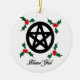 Cerâmica Ornamento pagão de Yule com Pentacle e visco