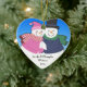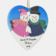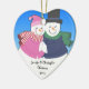 Este coração adorável ornamento dado forma para newlyweds, casais e casais caracteriza um boneco de neve e uma neve-menina que snuggling perto no amor. Na parte inferior do coração da porcelana há uma sala adicionar seus nomes e comemorar o ano. Aperfeiçoe para os casais que comemoram seu primeiro Natal junto. Faz uma lembrança maravilhosa do ano onde especial você passou junto.