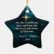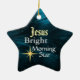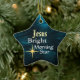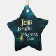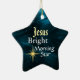 O Enfeites de natal em forma de estrela apresenta a Estrela Brilhante de Jesus em um lindo fundo azul de abstrato. A parte de trás do ornamento pode ser personalizada com os detalhes de sua escolha.