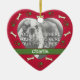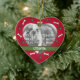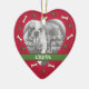 Certifique-se que seu animal de estimação é parte do Natal com este ornamento personalizado do coração que pode ser personalizado com a foto e o nome do seu cão. Caracteriza uma beira de impressões e de ossos da pata.
