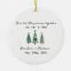 Árvores de Natal bonitas e minimalistas adoram um adorável ornamento personalizado para o primeiro Natal do casal juntamente com a data do casamento.