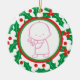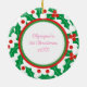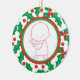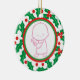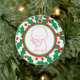 Ornament personalizável de 1rua de Natal do Santo Berry Baby apresentando uma adorável menina numa fronteira verde, vermelha e sagrada com amora, na frente, enquanto no verso há o nome do bebê.