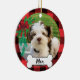 Adicione sua própria foto a este adorno fofo! Design inclui checagem de búfalos vermelhos, arco de natal e garland e um espaço para o nome do seu filhote (ou qualquer texto que você goste como o ano, ou "❤️ meu cachorro") visite www.curella.net para obter um retrato personalizado, adesivos e muito mais.