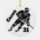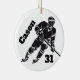 Você pode personalizar este ornamento de hóquei com seu nome, número e texto. Perfeito para um presente de hóquei para seu jogador favorito, treinador ou toda a equipe.