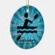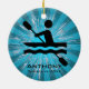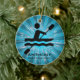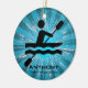 Kayaking Personalized Ornament Natal 20XX. Um kayaker em movimento contra um fundo azul de estouro. Todo texto personalizável, frente e verso!