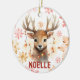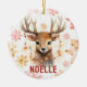 Adicione a maravilha da floresta à sua árvore com este ornamento personalizado de renas de aquarela! Apresentando uma rena suavemente pintada embrulhada em luzes de férias brilhantes, cercada por flocos de neve vermelhos e ouros, e o nome do seu filho em caracteres festivos, esta cerâmica mantém o charme e o conforto da sua decoração de Natal. Um presente perfeito para crianças, amantes de os animais, ou o primeiro Natal do bebê, este ornamento faz uma tradição de feriado tesourada ano após ano.