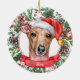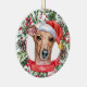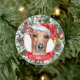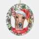 Este sofisticado Enfeites de natal cerâmico branco/cão grego italiano apresenta uma aquarela de um belo retrato de um chicote marrom num chapéu de Papai Noel, rodeado por verduras de férias, pinecones e bagas, com um banner vermelho com o nome do seu animal de estimação (ou troco para Feliz Natal). Você pode personalizar completamente esta design mudando a saudação e o ano atrás em uma fonte elegante. Este é um Enfeites de natal personalizado na moda é perfeito para fãs de chicotes, amantes de galgos, amantes de galgos italianos, amantes de cachorros e amantes de animais de estimação.