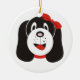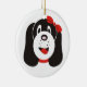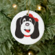 Ornamento personalizado de filhotes de bobo feliz, com um filhote de bobo com arco vermelho na cabeça.