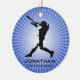 Ornamento Personalizado Do Jogador De Baseball. Um Batter posicionado contra um fundo de starburst azul e branco. Todo texto personalizável, frente e verso!
