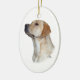 Estudo amarelo da cabeça de labrador retriever em um ornamento oval.