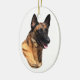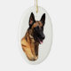O belga bonito e talentoso Malinois é destacado neste headstudy em um ornamento.