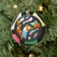 Com este ornamento redondo, você pode desejar que ame um Feliz Natal. Há uma Bola de Natal de Vidro Manchada no Padrão de Vidro Manchado.