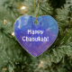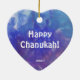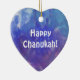 Este ornamento do coração tem uma pintura de uma composição abstrata com aqua, azul, branco e roxo e a expressão: "Chanukah feliz!" É um grande artigo da decoração do feriado para sua sala e um presente agradável para seu amor uns.