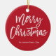 Feliz Natal, um simples ornamento de árvore vermelha e branca com texto que pode ser alterado - você pode mudar o nome da família e o ano.