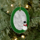 O quadro verde e o boneco de neve bonito destacam sua foto neste ornamento. abundância da sala no reverso personalizar