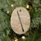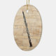 Em um fundo de azulejos de mármore pêssego-coloridos, um oboe é indicado, fazendo um ornamento sugestivo a ser pendurado como uma decoração ou vestido como um pendente.